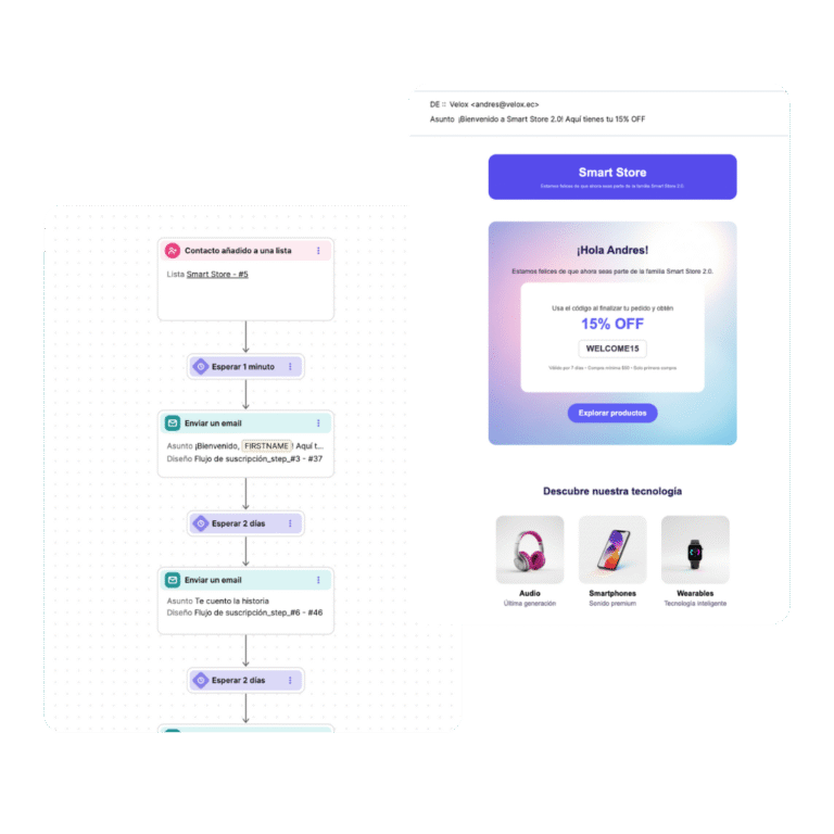 Cada fase del customer journey automatizada para maximizar conversión y fidelización.